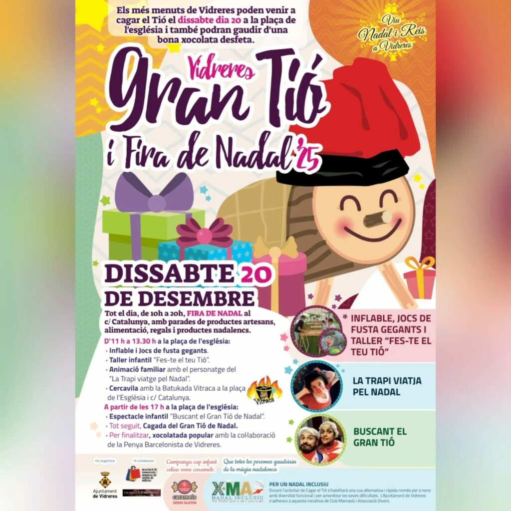 El municipi selvatà de Vidreres organitza la seva fira de Nadal el dissabte 20 de desembre. El carrer Catalunya s’omple de parades d’artesania, menjar, objectes de regal i productes nadalencs durant tot el dia. La festa comença al matí amb jocs de fusta gegants, inflables i un taller on els infants poden fer el seu propi tió. La companyia La Trapi amenitza el matí amb l’espectacle «La Trapi viatja pel Nadal» i hi ha batucada. A la tarda (17.00 h) se celebra l’espectacle «Buscant el Gran Tió» i posteriorment té lloc la tradicional Cagada del Gran Tió, una activitat molt esperada pels nens i nenes que finalitza amb una xocolatada popular.