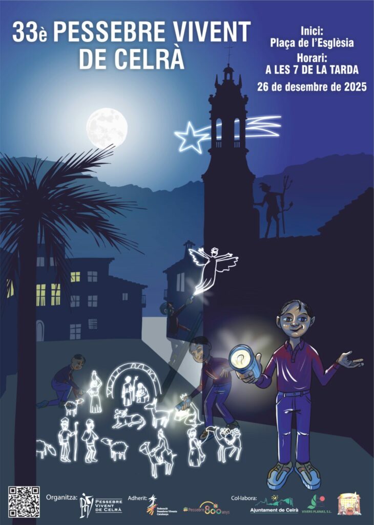 El 26 de desembre de 2025, a les 19:00 h, Celrà celebra la 33a edició del seu Pessebre Vivent, una proposta gratuïta i oberta a tothom que omple els carrers del poble de màgia, tradició i ambient nadalenc. Des del 1989, aquesta representació popular ha anat creixent i renovant-se any rere any, amb noves escenes, recorreguts i la implicació entusiasta del veïnat. No hi faltarà el tradicional brou calent d’Aneto per escalfar-te mentre gaudeixes d’aquesta experiència única i autèntica.
