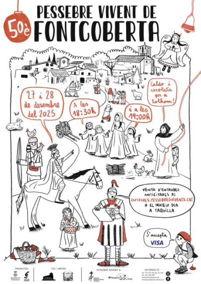 Els dies 27 i 28 de desembre de 2025, Fontcoberta celebrarà la 50a edició del seu emblemàtic Pessebre Vivent, una de les representacions més arrelades de la comarca. Nascut el 1976 com una iniciativa del rector i les famílies de catequesi, ha esdevingut un recorregut d’un quilòmetre pel nucli antic, amb entre 30 i 40 escenes que combinen quadres estàtics i teatralitzacions plenes de realisme i sensibilitat. Amb dues sessions diàries, a les 18:30 h i 19:00 h, el pessebre convida a gaudir d’una experiència immersiva i familiar que manté viu l’esperit de Nadal, any rere any.