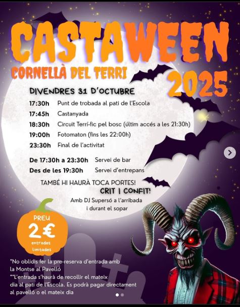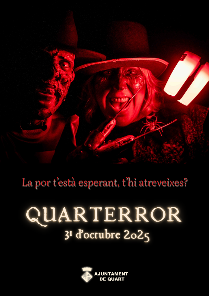El proper 31 d’octubre, Quart es transforma en l’epicentre del terror amb el QuarTerror’25, una celebració de Halloween plena d’activitats per a totes les edats: des del tradicional Crit o confit per als més petits, fins a un intens Passatge del Terror a l’Escola Santa Margarida només apte per als més valents, i un sopar musical low cost per acabar la nit amb bon ambient i diversió. Amb propostes adaptades per a persones amb necessitats específiques i venda anticipada de tiquets, el QuarTerror’25 promet emocions fortes, llaminadures i moltes sorpreses en una vetllada que no et voldràs perdre.